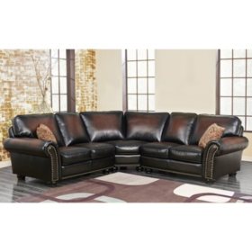Eiffel Full Grain Vintage Leather 3 Piece Sectional Sofa Sam S Club