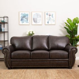 Benjamin Mid Century Top Grain Leather Sofa Sam S Club Top Grain Leather Sofa Leather Sofa Living Room Furniture