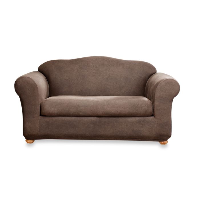 Sure Fit Two Piece Stretch Leather Sofa Slipcover In Brown Bed