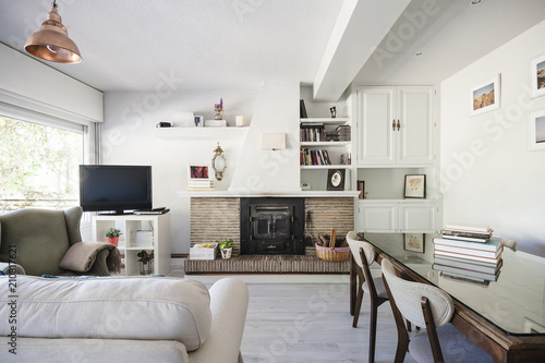 Page 2 Traditional Sofa In Front Fireplace High Resolution Stock