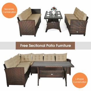 Merax 6 Piece Patio Dining Sets Pe Rattan Sectional Outdoor Patio