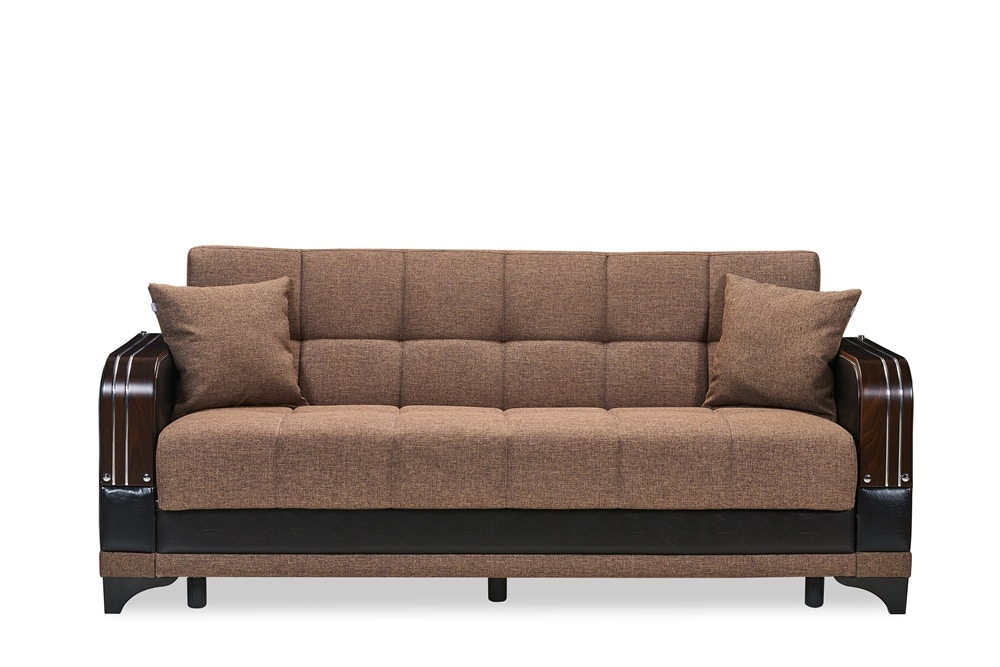 Folding Sofa Bed Of White Full Size Armrests Upholstered Brown