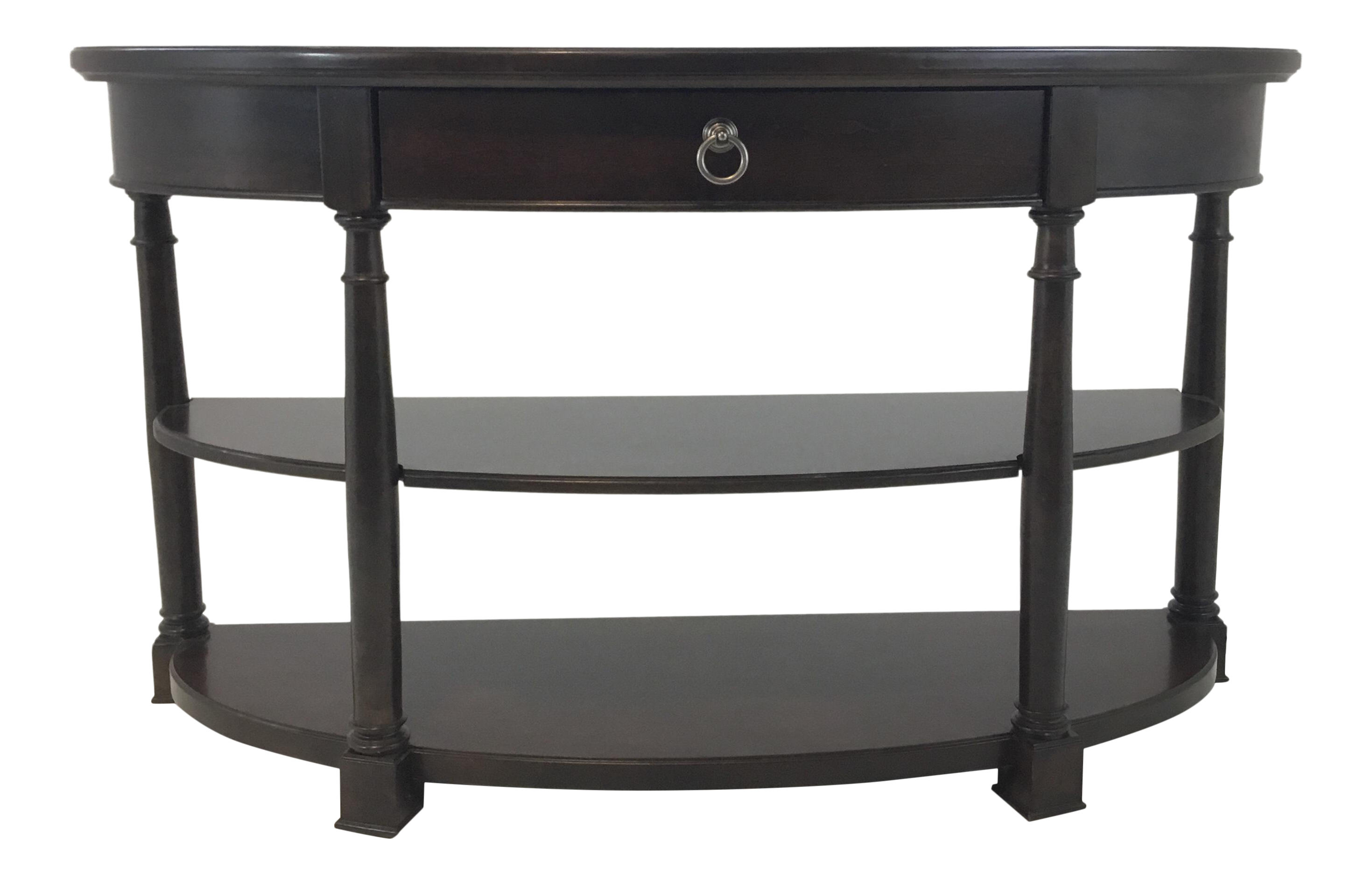 Transitional Single Drawer Dark Wood Demi Lune Console Table