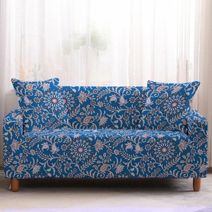 Blue Sofa Couch Cover Floral Pattern Jersey Furniture Slipcover
