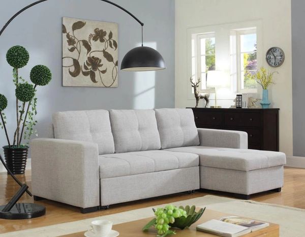 Gray Sectional Sofa With Pullout Sofa Bed And Left Side Storage