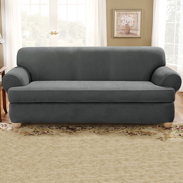 Sure Fit Stretch Suede Sofa 2 Piece T Cushion Slipcover