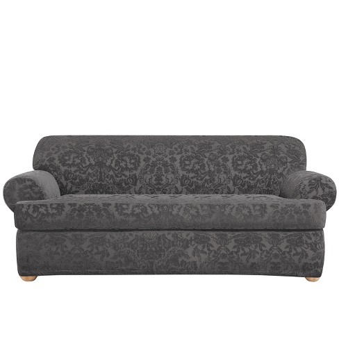 Stretch Jacquard Damask T Sofa Slipcover Gray Sure Fit Target