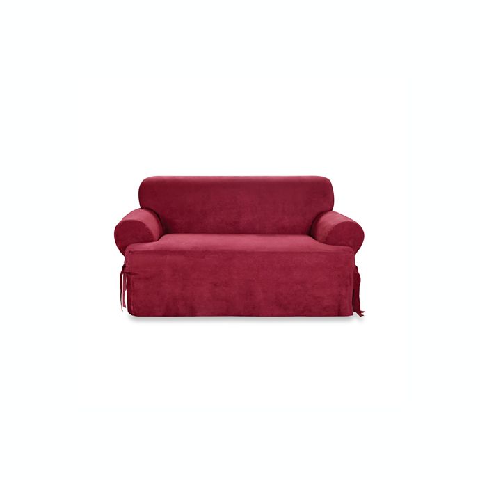 Soft Suede Burgundy T Cushion Sofa Slipcover By Sure Fit Bed