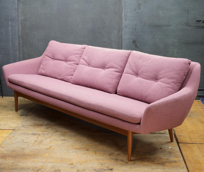 1960s Danish Pink Teak Sofa Vintage Mid Century Modern
