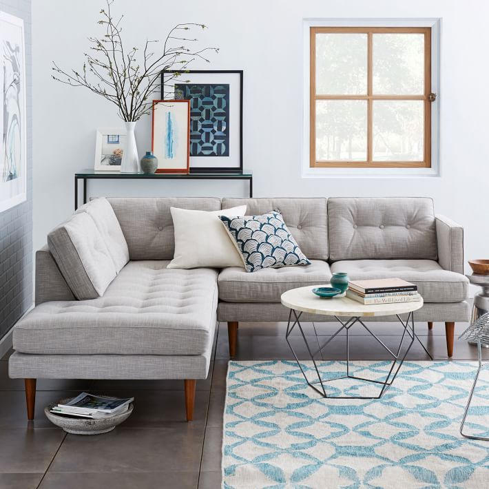 West Elm Peggy Mid Century Terminal Chaise Sectional Sofa